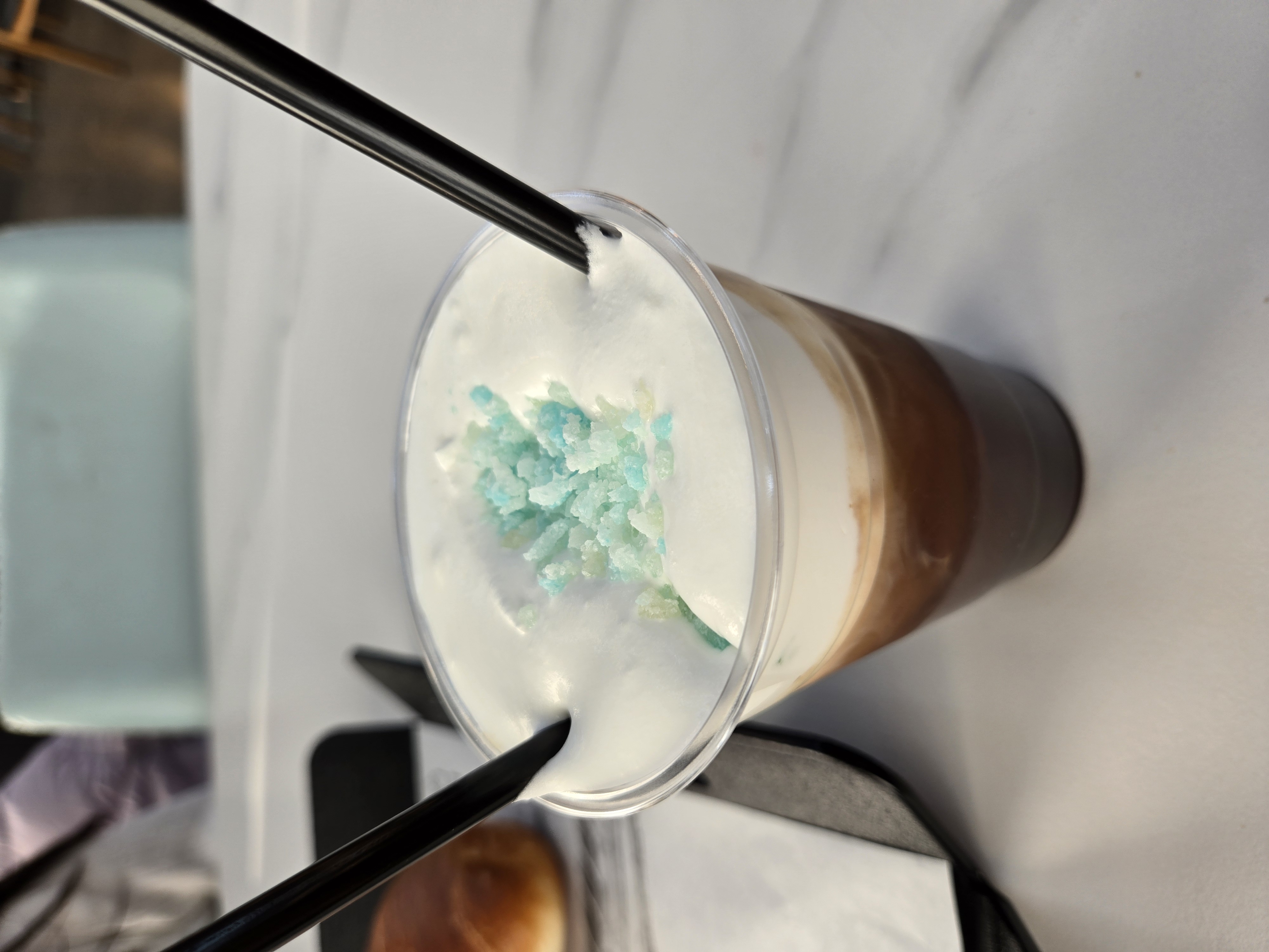 부드럽고 달달한 생크림에 푸른 바닷가의 에메랄드 빛깔을 머금은 소금과 설탕 알갱이가 뿌려져 있습니다.