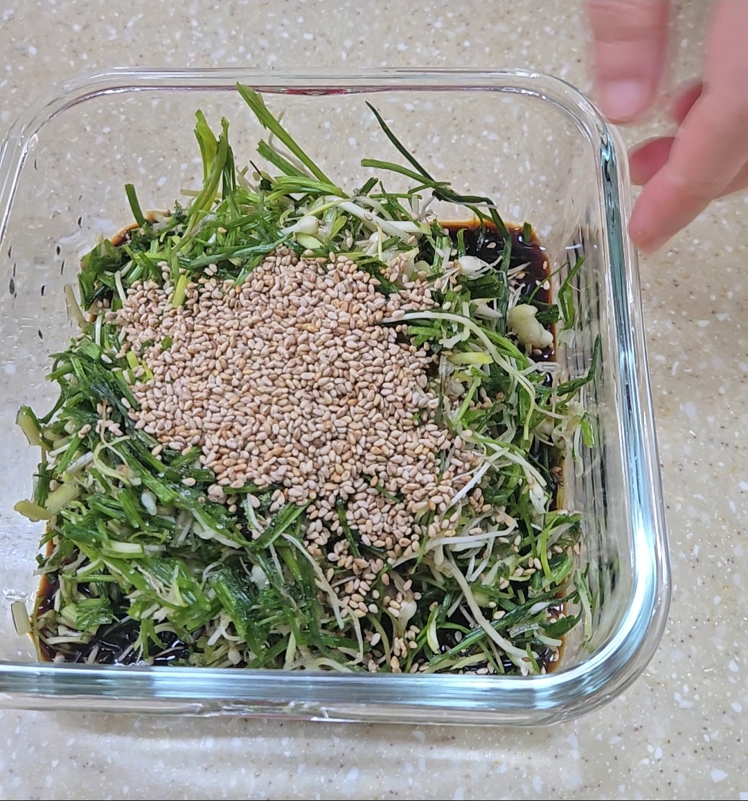 잘 씻은 달래를 종종종 썰어 줍니다. 1cm 미만으로 썰어 주세요.