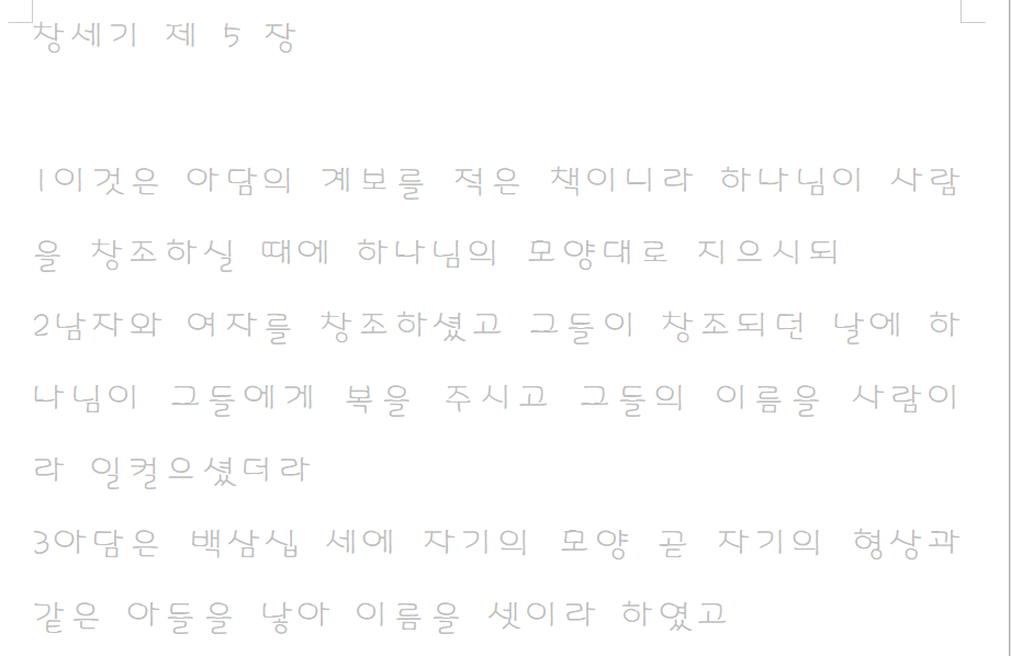 1 이것은 아담의 계보를 적은 책이니라 하나님이 사람을 창조하실 때에 하나님의 모양대로 지으시되